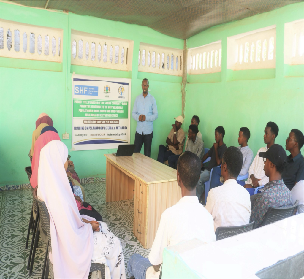 In line with humanitarian principles and safeguarding commitments, SOHHA integrated comprehensive PSEA and GBV mitigation and referral training into the Integrated Management of Acute Malnutrition (IMAM) curriculum. The training aimed to strengthen the capacity of Community Health Workers and IYCF counsellors to recognize GBV risks, apply mitigation measures in nutrition programming, and safely refer survivors using established referral pathways in Beletweyne District.